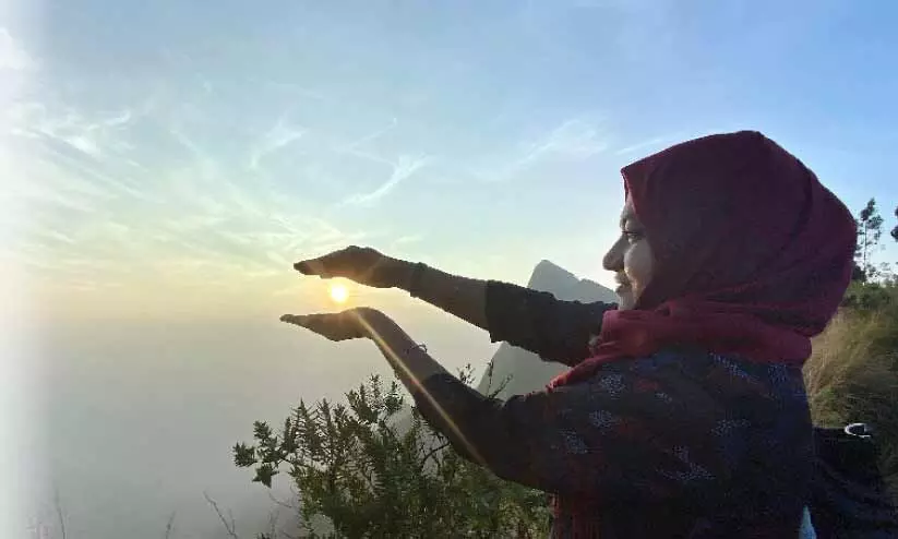 മല മുകളിലെത്തി ജീപ്പിൽ നിന്നും ഇറങ്ങിയപ്പോഴാണ് ശ്വാസംനേരെ വീണത്. മലയുടെ ഒരു വശത്തുള്ള വീതി കുറഞ്ഞ വഴിയിലൂടെ എല്ലാവരുടെയും കൂടെ ഞങ്ങളും നടന്നു. രണ്ട് വശവുമുള്ള അഗാധമായ താഴ്വര ഒരേസമയം ഭയവും ഭംഗിയും പ്രസരിപ്പിക്കുന്നു. നേർത്ത് വരുന്ന ആ വഴി ഒരു മുനമ്പിലാണ് അവസാനിക്കുന്നത്. അധികം അകലെയല്ലാതെ മാനം തൊട്ട് നിൽക്കുന്ന മലനിരകൾ. കനം കുറഞ്ഞ ഇരുട്ടിൽ ആളുകൾ അവിടവിടെയായി കിഴക്കെ ചക്രവാളത്തിലേക്ക് കണ്ണ്നട്ട് നിൽക്കുന്നുണ്ട്. എല്ലാവരും കാത്ത് നിൽക്കുന്നത് ഒരേ കാഴ്ച കാണാൻ. പെട്ടെന്ന് ആകാശത്തിൽ ഒരു ചുവന്ന പൊട്ട് പ്രത്യക്ഷപ്പെട്ടു. വെളുത്ത മഞ്ഞ് പുതപ്പിനിടയിലൂടെ മലയിടുക്കിൽ നിന്നും പൊട്ടിത്തെറിച്ച പോലെ പൊങ്ങുന്ന സൂര്യന്റെ കാഴ്ച കണ്ണിനെയും ഹൃദയത്തെയും ഒരുപോലെ ത്രസിപ്പിച്ചു. സൂര്യന്റെ ആദ്യകിരണങ്ങളേറ്റ് മലകൾ പൊൻതിളക്കത്തിൽ മുങ്ങി.