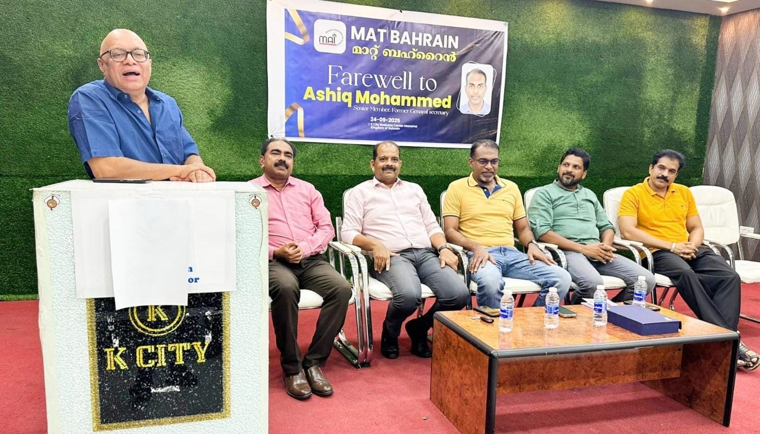 മാറ്റ് ബഹ്റൈൻ ഫൗണ്ടർ അംഗവും മുൻ ജനറൽ സെക്രട്ടറിയും ഇന്ത്യൻ സ്കൂൾ മുൻ എക്സിക്യൂട്ടീവ് അംഗവും കഴിഞ്ഞ 32 വർഷമായി ബഹ്റൈൻ പ്രവാസിയുമായ തൃശ്ശൂർ മതിലകം സ്വദേശി ആഷിഖ് മുഹമ്മദന് മാറ്റ് ബഹ്റൈൻ എക്സിക്യൂട്ടീവ് അംഗങ്ങളും സീനിയർ അംഗങ്ങളും ചേർന്ന് യാത്രയയപ്പ് നൽകി.