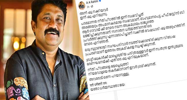 തിരുവനന്തപുരം: സുപ്രീം കോടതി ചീഫ് ജസ്റ്റിസ് ബി ആർ ഗവായ്ക്ക് നേരെ നടന്ന ആക്രമണ ശ്രമത്തിനെ നിശീതമായി വിമർശിച്ച് രാജ്യസഭാ എംപി എഎ റഹീം. ഒരു നൂറ്റാണ്ടായി സംഘപരിവാർ നടത്തിക്കൊണ്ടിരിക്കുന്ന വിദ്വേഷ പ്രചരണമാണ് ഇത്തരം അക്രമികളെ സൃഷ്ടിക്കുന്നത്. അങ്ങേയറ്റം അപമാനകരമായ സംഭവമാണ് പരമോന്നത നീതിപീഠത്തിൽ ഇന്ന് സംഭവിച്ചതെന്ന് റഹീം ഫേസ്ബുക്കിൽ കുറിച്ചു. ബ്രിട്ടീഷുകാർക്ക് മാപ്പെഴുതിയ ചരിത്രമുള്ളവർ ഇന്ന് സ്വതന്ത്ര ഇന്ത്യയുടെ ഭരണഘടനയ്ക്ക് എതിരെ ഷൂ എറിയുകയാണ്’. ബഹുമാനപ്പെട്ട ചീഫ് ജസ്റ്റിസ് ബി ആർ ഗവായ്ക്ക് നേരെ നടന്ന […]