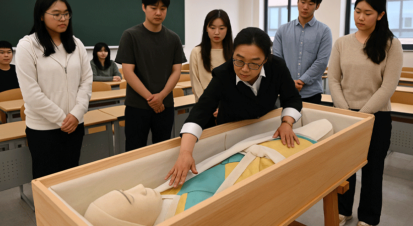 The post ഏകാന്ത മരണങ്ങളുടെ നാട്, ഭാവിയിലെ ജോലി മരിച്ചവരെ ഒരുക്കുക! ബുസാനിലെ സർവ്വകലാശാല ക്ലാസ് മുറിയിൽ ശവപ്പെട്ടികൾ നിരന്നതെന്തിന്? appeared first on Express Kerala.