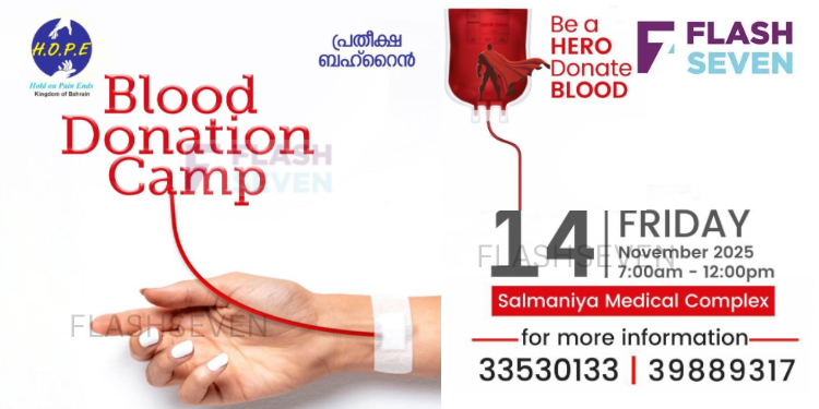 ബഹ്റൈനിലെ ജീവകാരുണ്യ മേഖലയിൽ സജീവമായി പ്രവർത്തിക്കുന്ന ഹോപ്പ് സംഘടിപ്പിക്കുന്ന രക്തദാന ക്യാമ്പ് നവംബർ 14 വെള്ളിയാഴ്ച്ച നടക്കുമെന്ന് സംഘാടകർ അറിയിച്ചു. സൽമാനിയ ഹോസ്പിറ്റലിലെ ബ്ലഡ് ബാങ്കിൽ നേരിട്ടെത്തി രക്തദാനം ചെയ്യാവുന്നതാണ്. രാവിലെ 7.00 മുതൽ ഉച്ചയ്ക്ക് 12.00 വരെയാണ് ക്യാമ്പ് പ്രവർത്തിക്കുക. രക്തദാനത്തിന്റെ മഹത്വം ഉൾക്കൊണ്ടുകൊണ്ട് ഹോപ്പ് സംഘടിപ്പിക്കുന്ന പത്താമത് രക്തദാന ക്യാമ്പാണിത്. രക്തദാനം ചെയ്യാൻ സാധിക്കുന്നവർ വിളിക്കുക 3988 9317 (ജയേഷ്), 3353 0133 (വിപിഷ്), 3554 1033 (ശ്യാംജിത്)