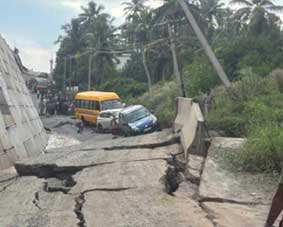 കൊല്ലം∙ കൊട്ടിയം മൈലക്കാടിനു സമീപം നിർമാണത്തിലിരിക്കുന്ന ദേശീയപാത ഇടിഞ്ഞുതാഴ്ന്നു. ദേശീയപാതയുടെ സംരക്ഷണ ഭിത്തി താഴെ സർവീസ് റോഡിലേക്ക് ഇടിഞ്ഞു താഴുകയായിരുന്നു. തുടർന്ന് സർവീസ് റോഡിൽ വിള്ളലുണ്ടായി. സ്കൂൾ ബസ് ഉൾപ്പെടെ നിരവധി വാഹനങ്ങൾ കുടുങ്ങി. മുപ്പതോളം കുട്ടികളുണ്ടായിരുന്ന സ്കൂൾ ബസ് കടന്നുപോകുമ്പോഴായിരുന്നു അപകടം. ഇതുൾപ്പെടെ ഏതാനും വാഹനങ്ങളാണ് കുടുങ്ങിയത്. കുട്ടികളെയും കാറുകളിലുണ്ടായിരുന്നവരെയും പരുക്കില്ലാതെ രക്ഷപ്പെടുത്തി. ദേശീയപാത അധികൃതർ ഉടൻ സ്ഥലത്തെത്തും. അപകട സ്ഥലത്ത് ഉയരത്തിലാണ് ആറുവരിപ്പാത കടന്നുപോകുന്നത്. നിർമാണം നടക്കുന്നതിനാൽ ഇരുഭാഗത്തെയും സർവീസ് റോഡുകൾ വഴിയായിരുന്നു ഇവിടെ ഗതാഗതം. സംരക്ഷണ ഭിത്തി […]