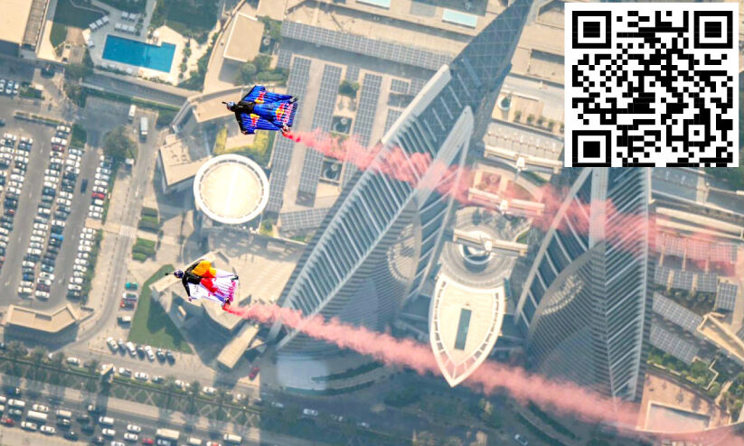 4,000 അടി ഉയരത്തിൽ പറന്ന ഹെലികോപ്റ്ററിൽനിന്ന് ചാടിയാണ് ഇവർ മനാമയുടെ ആകാശത്തേക്ക് പറന്നിറങ്ങിയത്. തുടർന്ന്, ടവറുകളിലെ വിൻഡ് ടർബൈനുകൾക്ക് 40 മീറ്റർ മുകളിലൂടെ ടവറുകളുടെ മധ്യരേഖയിലേക്ക് കൃത്യമായ കോറിയോഗ്രാഫിയിലൂടെ അവർ പറന്നടുക്കുകയായിരുന്നു. ടവറുകൾക്കിടയിലൂടെ സിൻക്രൊണൈസ്ഡ് ഫ്ലൈറ്റ് നടത്തുകയെന്നത് കഴിഞ്ഞ രണ്ട് വർഷമായി തങ്ങളുടെ സ്വപ്നമായിരുന്നുവെന്ന് ലോക ചാമ്പ്യനായ ഫ്രെഡ് ഫ്യൂജെൻ പറഞ്ഞു. കൃത്യമായ ടൈമിങ് ഉറപ്പാക്കാൻ ജി.പി.എസോ മറ്റു വിവരങ്ങളോ ഞങ്ങൾക്കുണ്ടായിരുന്നില്ല. ഞങ്ങളുടെ സ്വയം തോന്നലുകളിലൂടെ മാത്രമാണ് ഞങ്ങൾ വേഗം മനസ്സിലാക്കുന്നത്.
