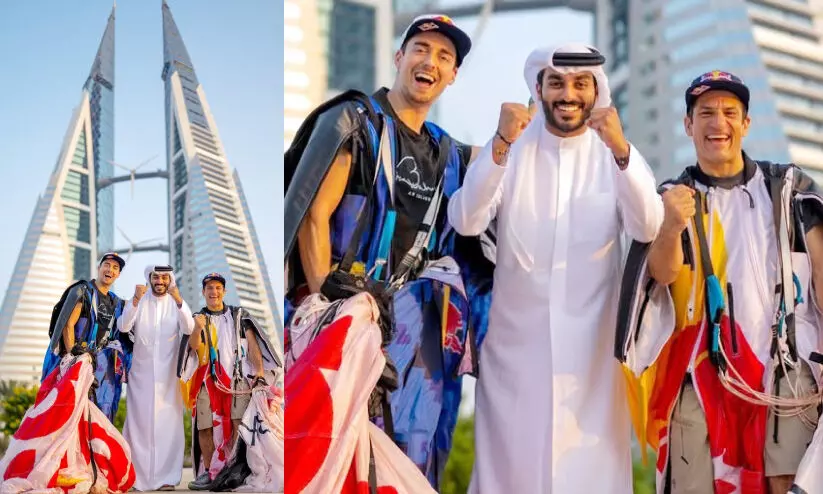 മനാമ: ബഹ്റൈൻ വേൾഡ് ട്രേഡ് സെന്ററിന്റെ ഇരട്ട ടവറുകൾക്കിടയിലൂടെ സമാന്തരമായി ഇരുഭാഗങ്ങളിലേക്ക് പറന്ന് സാഹസിക കായികതാരങ്ങൾ. ഇതിലൂടെ ലോകത്തിലെ ആദ്യത്തെ സിൻക്രൊണൈസ്ഡ് വിങ്സ്യൂട്ട് ഫ്ലൈറ്റ് ആണ് വിജയകരമായി പൂർത്തിയാക്കിയത്. റെഡ് ബുൾ വിങ്സ്യൂട്ട് അത്ലറ്റുകളായ ഡാനി റൊമാൻ, ഫ്രെഡ് ഫ്യൂജെൻ എന്നിവരാണ് ഈ അവിശ്വസനീയമായ നേട്ടം കൈവരിച്ചത്. ഇരുദിശകളിൽനിന്ന് നേർക്കുനേർ പറന്നാണ് ഇരുവരും വിസ്മയകരമായ ഈ ‘ഹെഡ്-ഓൺ ക്രോസിങ്’ പൂർത്തിയാക്കിയത്. 220 കിലോമീറ്റർ വേഗത്തിലാണ് ഇരുവരും പറന്നത്. ക്രോസിങ് പോയന്റിൽ ഇരുവരും ഒന്നിച്ചുള്ള വേഗം മണിക്കൂറിൽ 440 കിലോമീറ്റർ ആയിരുന്നു. വെറും 10 മീറ്റർ മാത്രം അകലത്തിലാണ് ഇരുവരും ഒരേ നിമിഷം ടവറുകൾക്കിടയിലെ മധ്യരേഖ മുറിച്ചുകടന്നത്.