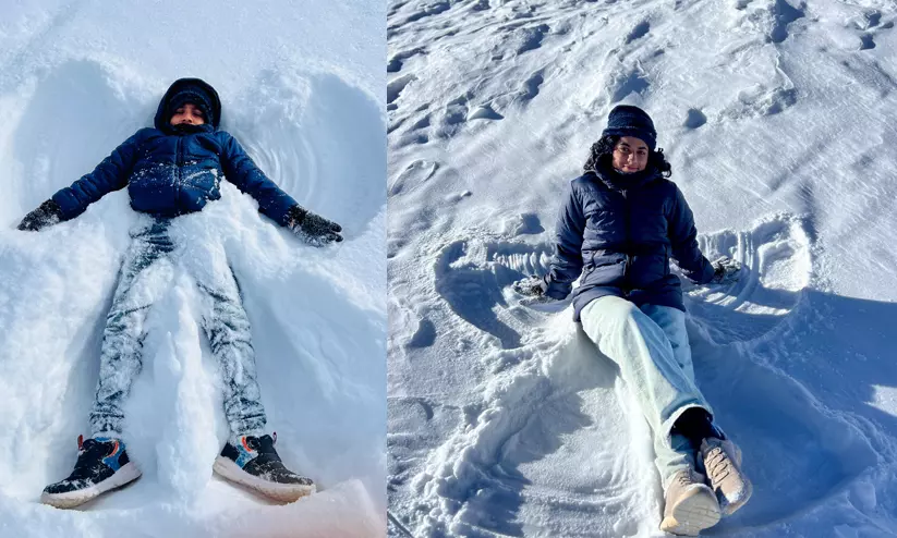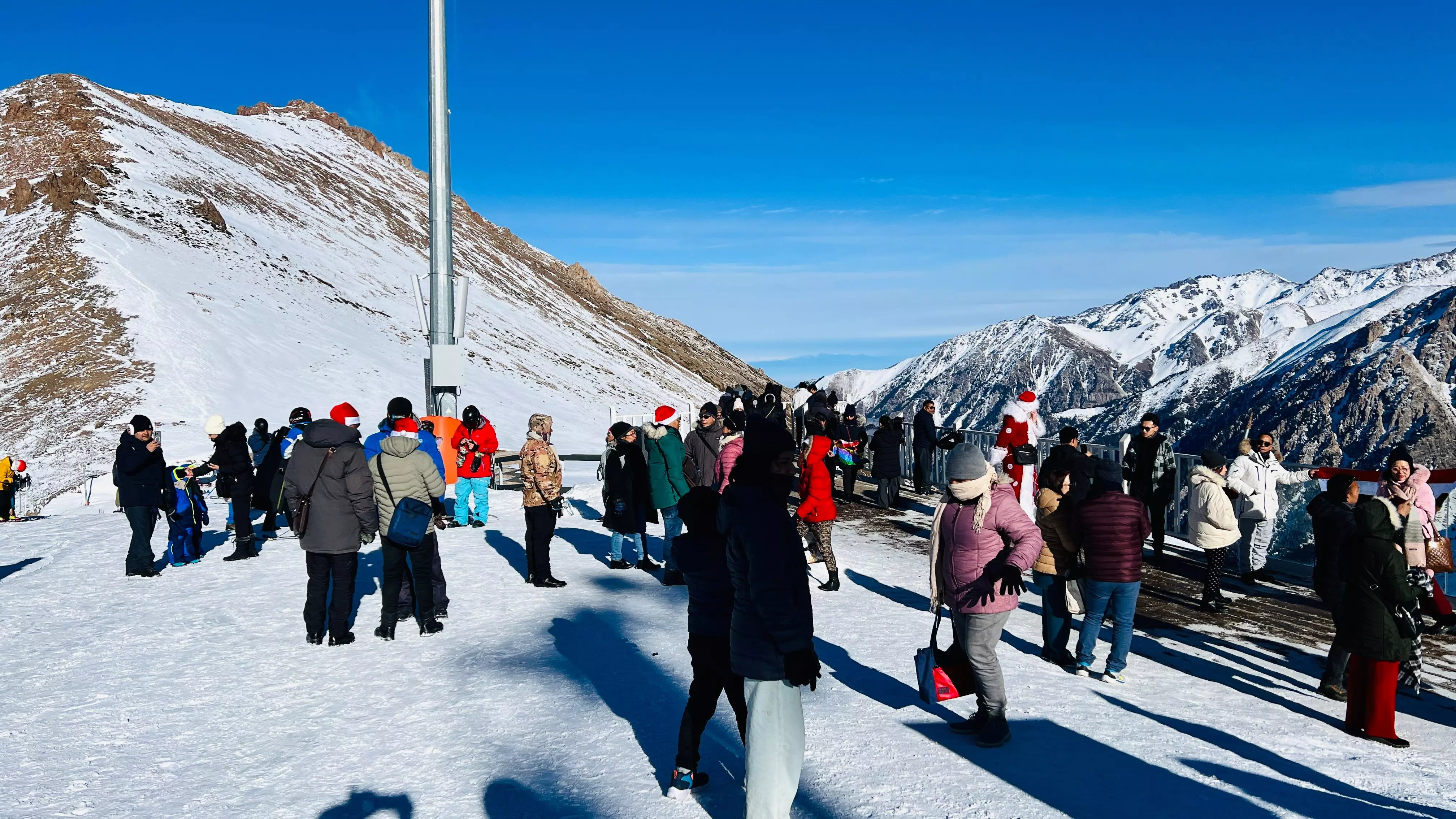 ഉറുമ്പിൻ നിരകൾ വരിവരിയായി പോകുന്നപോലെ താഴെ സ്കേറ്റിങ് ചെയ്യുന്ന ആളുകൾ നീങ്ങുന്നു. കാൽപാദത്തിലൂടെ തണുപ്പ് തുളച്ചു കയറുന്നു, ഏറ്റവും മുകളിലുള്ള ഈ സ്റ്റേഷനിൽ തണുപ്പ് അതികഠിനമായിരുന്നു. മൈനസ് 18 ഡിഗ്രി സെൽഷ്യസ്. ആദ്യമായി ഇത്രയും കടുത്ത തണുപ്പിൽ എത്തിയതുകൊണ്ടും സമുദ്രനിരപ്പിൽനിന്ന് വളരെ ഉയരത്തിലായതുകൊണ്ടുമാകാം കുറച്ചുനേരം ശ്വാസമെടുക്കാൻ ബുദ്ധിമുട്ട് പോലെ തോന്നി. സ്നോമാൻ ഉണ്ടാക്കണം എന്ന് പറഞ്ഞാണ് ഇവിടേക്ക് വന്നതെങ്കിലും തണുപ്പിന്റെ കാഠിത്താൽ തിരികെ പോകാം എന്നു പറഞ്ഞ് നീൽ കരച്ചിലാരംഭിച്ചു. നേവയും ഞാനും അവിടുത്തെ മഞ്ഞില് കിടന്നു സ്നോ ഏഞ്ചലിന്റെ (മഞ്ഞുമാലാഖയുടെ) ചിത്രം വരച്ചു. ഇവിടെ കസാഖിന്റെ പരമ്പരാഗത ടെന്റ് ആയ യാർട്ടിൽ താമസിക്കാനുള്ള സൗകര്യമുണ്ട്. രാത്രി അവിടെ താമസിക്കുന്ന കാര്യം ആലോചിക്കാന് പോലും പറ്റുന്നില്ല. ഫോട്ടോയെടുത്തതിനു ശേഷം തിരികെആദ്യത്തെ സ്റ്റേഷനിലെത്തി.