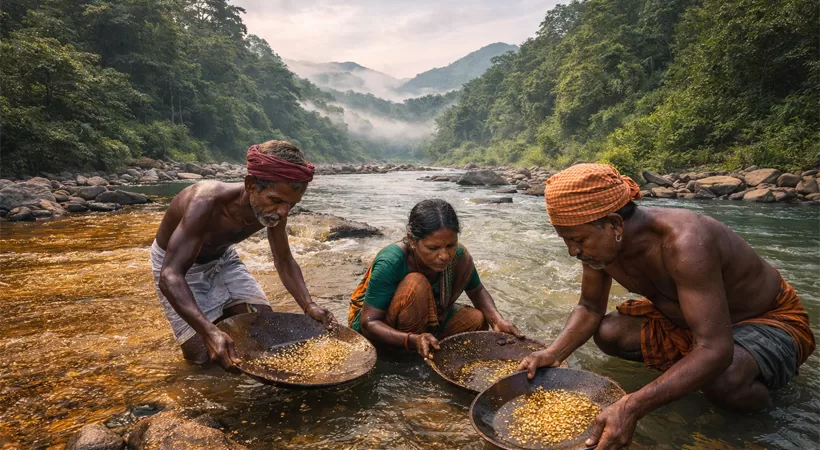 ലോകവിപണിയിൽ സ്വർണ്ണവില ഒരു പവന് 80,000 രൂപ കടക്കുമ്പോഴും ഇവിടുത്തെ മനുഷ്യർക്ക് ഇതൊരു ആഡംബരമല്ല, മറിച്ച് കഠിനമായ നിത്യജീവിതമാണ്. മണലിൽ നിന്ന് സ്വർണ്ണത്തരികളെ വേർതിരിച്ചെടുക്കുന്ന വിദ്യ ഇവർക്ക് പാരമ്പര്യമായി കിട്ടിയതാണ്. കർകരി നദിയും സുബർണരേഖയും കൈകോർക്കുന്ന ഈ ‘രത്നഗർഭ’ മേഖലയിലെ മണൽപ്പുറങ്ങളിൽ ഭാഗ്യം ഒളിഞ്ഞിരിപ്പുണ്ട്. പക്ഷേ ഇതൊരു ലോട്ടറിയല്ല, മറിച്ച് അതികഠിനമായ അധ്വാനമാണ്. ഒരു ദിവസം മുഴുവൻ ചുട്ടുപൊള്ളുന്ന വെയിലത്ത് ഇരുന്ന് മണൽ അരിച്ചാൽ കിട്ടുന്നത് ഒരു അരിമണിയോളം പോലുമില്ലാത്ത ചെറിയ തരികൾ മാത്രമാണ്. പക്ഷേ, മാസാവസാനം ഇത് 80 ഗ്രാം വരെയായി മാറാറുണ്ട്. റാഞ്ചിയിലെ ‘പിസ്ക’ പോലുള്ള ഗ്രാമങ്ങളിൽ ഇതൊരു വെറും തൊഴിലല്ല, അവരുടെ ജീവിതത്തിന്റെ തന്നെ ഭാഗമാണ്.