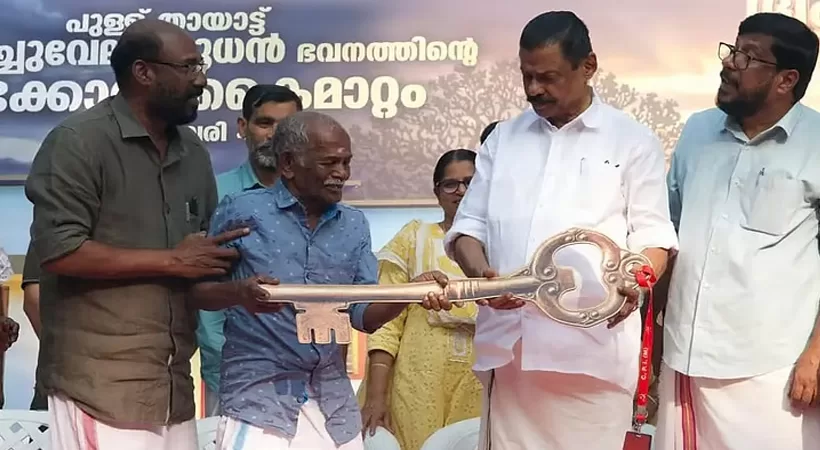 തൃശൂർ: കേന്ദ്രമന്ത്രി സുരേഷ് ഗോപി സഹായം നിരസിച്ചതിനെത്തുടർന്ന് പ്രതിസന്ധിയിലായ തൃശൂർ പുള്ള് സ്വദേശി തായാട്ട് കൊച്ചുവേലായുധന്റെ കുടുംബത്തിന് സിപിഎം നിർമ്മിച്ച് നൽകിയ വീട് കൈമാറി. ഞായറാഴ്ച ഉച്ചയ്ക്ക് ശേഷം മൂന്നിന് നടന്ന ചടങ്ങിൽ സിപിഎം സംസ്ഥാന സെക്രട്ടറി എം.വി. ഗോവിന്ദൻ വീടിന്റെ താക്കോൽ കുടുംബത്തിന് കൈമാറി.