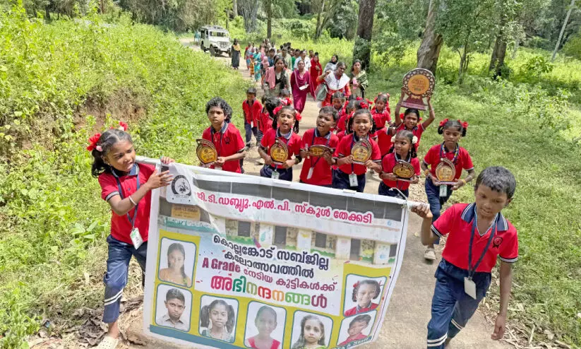 ഉപജില്ല കലോത്സവത്തിൽ പങ്കെടുപ്പിക്കാൻ സഹപ്രവർത്തകർക്കും ആവേശമായി. സംഘഗാനം കുട്ടികളുടെ വഴിക്കുവരാൻ ആഴ്ചകളെടുത്തിട്ടുണ്ട്. ശ്രുതി താളലയഭംഗങ്ങളെല്ലാം ഒരു പരുവത്തിലാക്കി മലയിറങ്ങി കലോത്സവനഗരിയിലെത്തി. ഇത്രയധികം കുട്ടികളെ കാണുന്നത് ആദ്യം. ചമഞ്ഞൊരുങ്ങിയ കലാപ്രതിഭകൾ. ഒപ്പന മണവാട്ടിക്കൊപ്പം ഫോട്ടോ പിടുത്തം. തിരുവാതിരക്കളിക്കാർ, ഭരതനാട്യം, മോഹിനിയാട്ടം, മാർഗംകളി, വട്ടപ്പാട്ട് തുടങ്ങിയവരെയെല്ലാം കണ്ട് ആശ്ചര്യത്തിൽ കുട്ടികൾ ഉത്സവനഗരിയിൽ നടന്നു. മത്സരനേരമായി. വിസിൽ മുഴങ്ങിയാലും ടീച്ചർ അനുമതി കൊടുത്താലേ അവർ പാടൂ. ഉത്കണ്ഠയുടെ നടുക്ക് അവർ പാടിത്തീർത്തു. ഫലം വന്നു. എ ഗ്രേഡ്. അത് ചരിത്രമായിരുന്നു. മാധ്യമപ്രവർത്തകർ ഞങ്ങളെ വളഞ്ഞു. ഉപജില്ല പ്രധാനാധ്യാപക കൂട്ടായ്മയുടെ നേതൃത്വത്തിൽ മലകയറി എത്തിയ അഭിനന്ദനപ്രവാഹങ്ങൾ ഞങ്ങളെ വീർപ്പുമുട്ടിച്ചു. ഇപ്പോൾ കുട്ടികളും ചോദിക്കുന്നുണ്ട് ‘റോഡ് വേണം. ഞങ്ങൾക്കും താഴെ പോയിപ്പഠിക്കണം, കലയും വരയും സംഗീതവും’ എന്ന്. പതിറ്റാണ്ടുകളായി ആ ചോദ്യം തേക്കടിയുടെ അന്തരീക്ഷത്തിലുണ്ട്.
