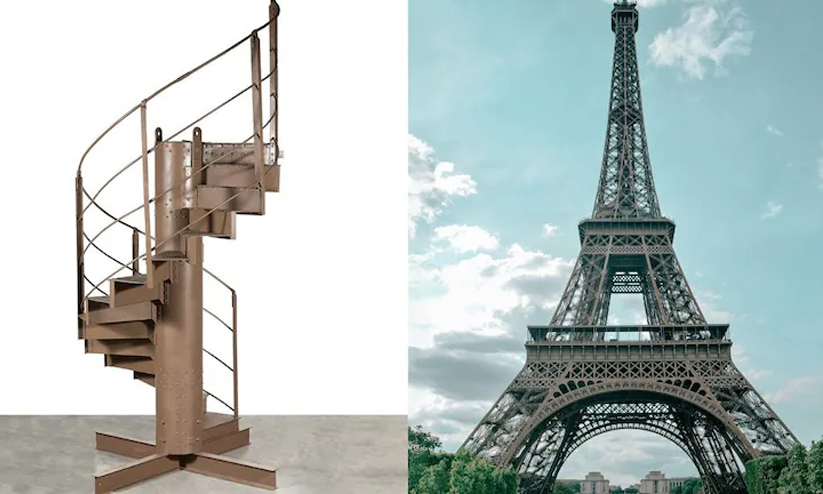 1887-1889 കാലഘട്ടത്തിലായിരുന്നു ഈഫൽ ടവറിന്റെ നിർമാണം. ഈ സമയത്ത് ടവറിന്റെ ഭാഗമായിരുന്ന ഗോവണിയാണ് വിൽപ്പനക്ക് വെച്ചിരിക്കുന്നത്. 2.75 മീറ്റർ ഉയരമുള്ള ഈ ഘടന റിവേറ്റഡ് സ്റ്റീൽ കൊണ്ടാണ് നിർമിച്ചിരിക്കുന്നത്. 14 പടികളാണുള്ളത്. ടവറിന്റെ രണ്ടാമത്തെയും മൂന്നാമത്തെയും നിലകളെ ബന്ധിപ്പിച്ചുകൊണ്ടുള്ളതായിരുന്നു ഈ പടികൾ.