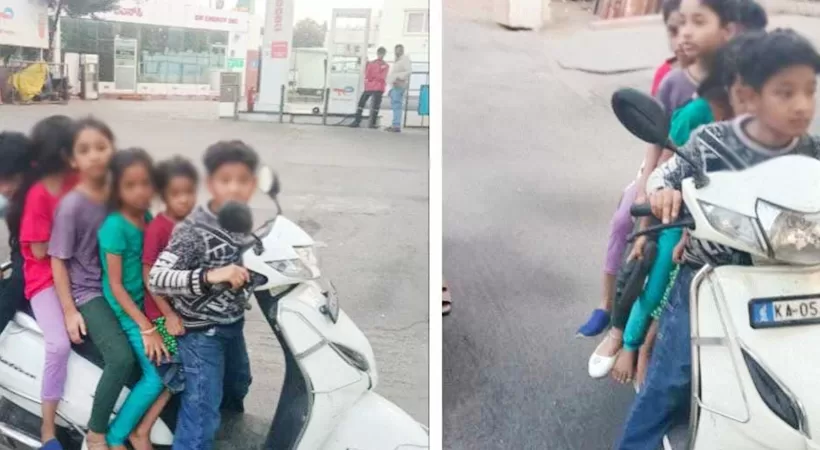 ബെംഗളൂരു നഗരത്തെ നടുക്കിയ അതീവ അപകടകരമായ ഒരു ട്രാഫിക് നിയമലംഘനത്തിന്റെ വീഡിയോയാണ് ഇപ്പോൾ സമൂഹമാധ്യമങ്ങളിൽ കാട്ടുതീ പോലെ പടരുന്നത്. ഗോരിപാളയ പദരായണപുര മെയിൻ റോഡിൽ ഇന്നലെ രാവിലെ 10:45-ഓടെയാണ് ഒരു സ്കൂട്ടറിൽ ആറ് കുട്ടികൾ ഒന്നിനുപുറകെ ഒന്നായി ഇരുന്ന് യാത്ര ചെയ്തത്. ഏകദേശം 10-നും 12-നും ഇടയിൽ പ്രായമുള്ള കുട്ടികളാണ് സ്കൂട്ടർ ഓടിച്ചിരുന്നത്. നേരെ ഇരിക്കാൻ പോലും കഴിയാത്ത രീതിയിൽ തിങ്ങിനിറഞ്ഞ്, ഹാൻഡിൽ പിടിക്കാൻ കഷ്ടപ്പെടുന്ന ആൺകുട്ടിയും അവന് പിന്നിലായി അഞ്ച് പേരും ചേർന്ന് തിരക്കേറിയ റോഡിലൂടെ പാഞ്ഞുപോകുന്ന കാഴ്ച ഞെട്ടലോടെയാണ് യാത്രക്കാർ കണ്ടുനിന്നത്.