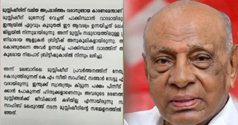 മുസ്ലിം ലീഗിന് ജില്ലയില് വലിയ അപ്രമാദിത്വം വരാനുണ്ടായ കാരണമെന്താണെന്ന ചോദ്യത്തിനാണ് മറുപടി പറയുകയായിരുന്നു പാലോളി. ‘മുസ്ലിംലീഗ് മുന്നോട്ട് വെച്ചത് പാകിസ്ഥാന് വാദമായിരുന്നു. ഏറ്റവും കൂടുതല് ഈ ആവശ്യം ഉന്നയിച്ചത് മലപ്പുറം ജില്ലയില് നിന്നുമായിരുന്നു. അന്ന് മുസ്ലിം സമുദായത്തിലുള്ള പ്രമാണിമാരായ ആളുകള് ബ്രിട്ടീഷ് അനുകൂലികളായിരുന്നു. അതുകൊണ്ടുതന്നെ അവര് ഉന്നയിച്ച പാകിസ്ഥാന് വാദത്തിന് അനുകൂലമായ നിലപാട് ബ്രിട്ടീഷുകാരില്നിന്ന് ലഭിച്ചു. അന്ന് മലബാറിലെ മുസ്ലിം ലീഗ് പ്രവര്ത്തനത്തിന് നേതൃത്വം കൊടുത്തിരുന്നത് കെ.എം. സീതി സാഹിബ്, സത്താര് സേട്ടു എന്നിവരായിരുന്നു. സ്വാതന്ത്ര്യം കിട്ടുന്ന പക്ഷം പിന്നീട് ഭരിക്കാന് പോകുന്നത് ഹിന്ദുക്കളാണെന്നും അവരുടെ ഭരണത്തില് മുസ്ലിംകള്ക്ക് ജീവിക്കാന് കഴിയില്ല എന്നായിരുന്നു സീതി സാഹിബ് മലപ്പുറത്ത് നടന്ന മുസ്ലിം ലീഗിന്റെ സമ്മേളനത്തില് പറഞ്ഞത്.