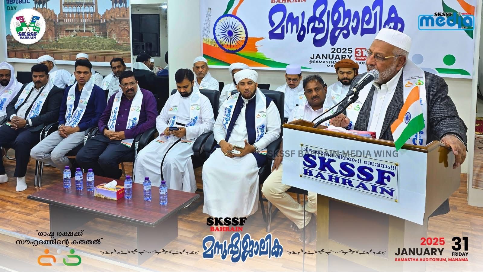 എസ് കെ എസ് എസ് എഫ് ബഹ്റൈൻ മനുഷ്യജാലിക സ്വാഗത സംഘം ചെയർമാൻ അശ്റഫ് അൻവരി ചേലക്കര അദ്ധ്യക്ഷത വഹിച്ച ചടങ്ങിൽ സമസ്ത ബഹ്റൈൻ പ്രസിഡണ്ട് ഫക്റുദ്ധീൻ സയ്യിദ് പൂക്കോയ തങ്ങൾ ഉദ്ഘാടന കർമ്മം നിർവ്വഹിക്കുകയും എസ് കെ എസ് എസ് എഫ് സ്റ്റേറ്റ് വൈസ് പ്രസിഡണ്ട് സയ്യിദ് ഫക്റുദ്ധീൻ ഹസനി തങ്ങൾ കണ്ണന്തളി മുഖ്യ പ്രഭാഷണം നടത്തി സംസാരിക്കുകയും ചെയ്തു.